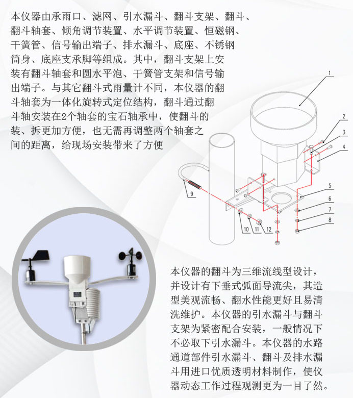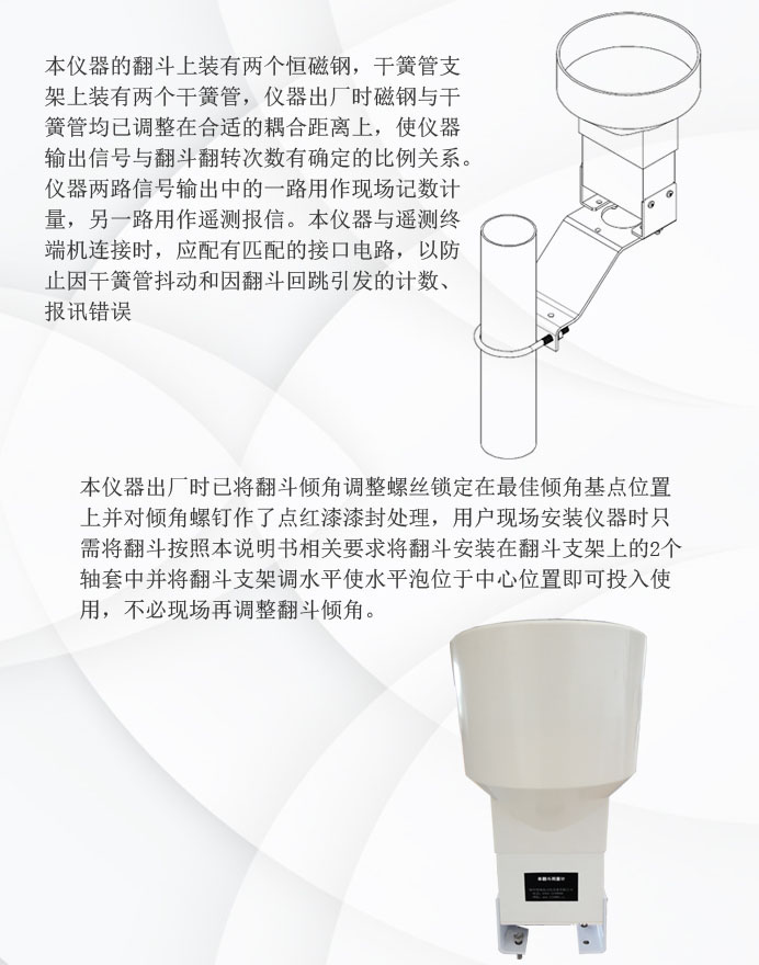 本儀器的引水漏斗與翻斗支架為緊密配合安裝,一般情況下不必取下引水漏斗。